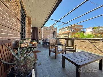 TOR DE CENCI - Via Gaetano de Felice. Proponiamo in vendita villa di recente costruzione facente parte di un complesso di sei ville a schiera in cortina. La soluzione si compone di tre livelli di cui due fuori terra. Al piano terra rialzato troviamo il patio verandato con vetrata a pacchetto, soggiorno, cucina abitabile, servizio finestrato con doccia, camera matrimoniale e camera singola.