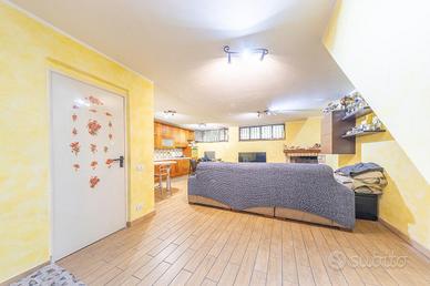 Al piano terra, l'immobile si presenta con una configurazione simile a un bilocale indipendente, composto da un accogliente soggiorno con cucina a vista, un bagno finestrato e un doppio giardino mattonato, presente sia sul fronte che sul retro dell'abitazione, perfetto per momenti di relax all'aperto o per cene in compagnia.