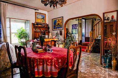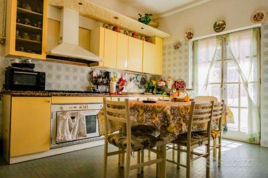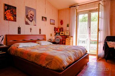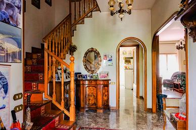 La casa si compone entrando dal giardino da ingresso, salone doppio con camino, disimpegno che porta nella cucina abitabile e giardino in parte pavimentato. Salendo al piano superiore, accolti da un comodo disimpegno troviamo tre camere da letto ognuna con balcone privato e due bagni entrambi finestrati uno con doccia e uno con vasca.