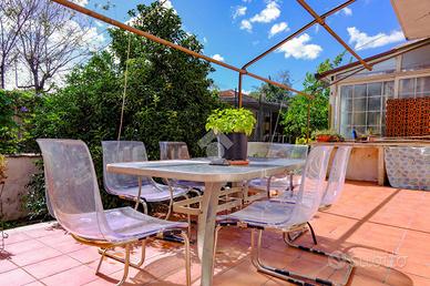La casa dispone di un box auto di 16mq, posizionata all'interno del noto complesso residenziale, gode di un ottima esposizione ed è ideale per una famiglia. La luminosità è uno dei punti di forza, grazie all'esposizione favorevole e ai tre balconi che offrono una vista aperta. La villa, interamente fuori terra, offre un ambiente signorile e accogliente, ideale per chi desidera vivere in una zona residenziale ben collegata e servita