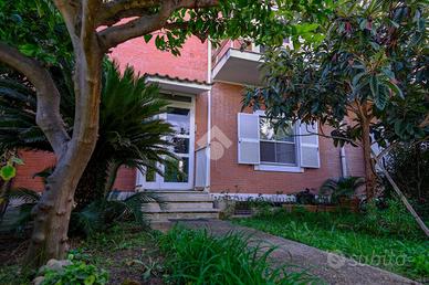 MONTI SAN PAOLO VILLAGGIO ALITALIA: Proponiamo in vendita all'interno del complesso residenziale 'Villaggio Alitalia' villa su due livelli fuori terra con giardino fronte e retro e un comodo box auto di mq, ideale per chi cerca una soluzione abitativa spaziosa e ben organizzata. La proprietà, costruita negli anni '90, garantisce un'ottima distribuzione degli spazi.
