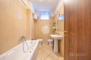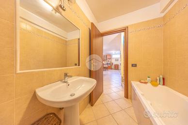 Distribuita su due livelli, al piano terra troviamo un comodo salone con cucina separata ma a vista, un bagno finestrato con box doccia ed una camera matrimoniale. Il piano inferiore è composto da un ampio locale adibito a salone con angolo cottura, un locale adibito a camera matrimoniale ed un locale adibito a bagno finestrato con vasca.