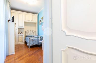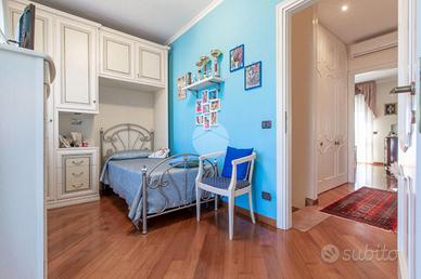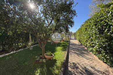 In via Mario Gentilini, nel quartiere di Torrino Mezzocammino, proponiamo in vendita una villa a schiera in ottimo stato interno, rifinita con cura in ogni singolo dettaglio ed arricchita con numerosi materiali di pregio. Il giardino frontale, in parte verde ed in parte mattonato, offre la possibilità di parcheggiare internamente, la parte retrostante, mattonata e con barbecue in muratura, permette di potersi ritagliare piacevoli momenti di relax da vivere all'aria aperta. L'immobile ha una esposizione Sud Est - Nord Ovest e si sviluppa su tre livelli. Al piano terra, oltrepassando il patio ed entrando dalla porta di ingresso troviamo un ampio salone di rappresentanza, da qui una porta finestra ci fa accedere al giardino. A disposizione abbiamo un servizio finestrato. Salendo le scale arriviamo al primo piano dove si svilippa la zona notte con tre comode camere da letto, una delle quali con bagno finestrato en suite, e la camera matrimoniale ha al suo interno una cabina armadio. Troviamo un ulteriore servizio e due ampi balconi. Il piano seminterrato risulta spazioso e luminoso, con una cucina in muratura creata su misura, zona living e servizio con porta finestra. La soluzione è fornita di grate di sicurezza, zanzariere, allarme ed impianto di condizionamento posizionato su ogni piano. Completa la proprietà un posto auto privato scoperto.