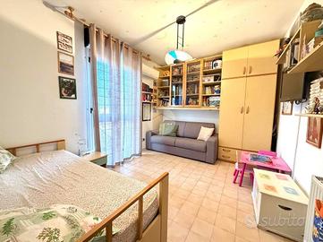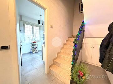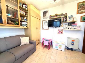 Il piano superiore ospita la zona notte, composta da una camera matrimoniale, una cameretta, una terza camera utilizzabile come studio o stanza ospiti, e un secondo bagno finestrato con doccia, pensato per garantire comfort e funzionalità.