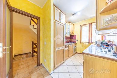 Al piano terra l'abitazione si presenta con una disposizione funzionale che richiama l'indipendenza di un bilocale, composta da un accogliente soggiorno con cucina a vista, un bagno finestrato e un doppio giardino mattonato, uno frontale e uno sul retro, perfetti per vivere piacevoli momenti all'aperto, organizzare cene o godersi attimi di relax in totale privacy.