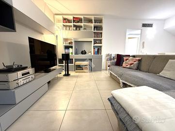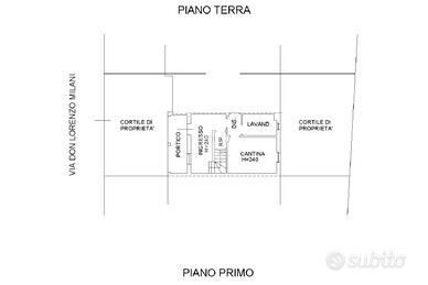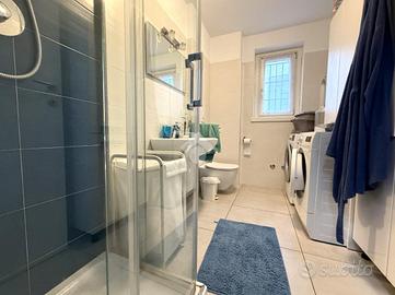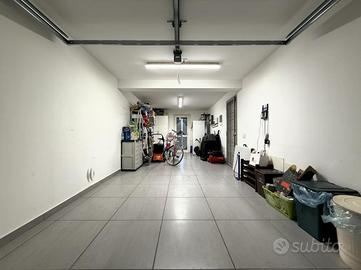Al piano terra si accede ad un box doppio in lunghezza da 35mq dotato di basculante elettrica. Sempre sul piano troviamo un servizio finestrato con doccia, completo di attacchi per lavatrice, ed uno studio luminoso con accesso diretto al giardino sul retro, perfetto come zona lavoro o stanza multifunzionale.