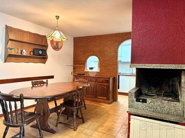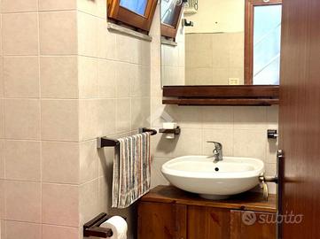 Entrando nella proprietà veniamo introdotti verso la casa da un piccolo cortile di pertinenza e da un portico ed al piano terra dell'abitazione ci accoglie un salone con camino e cucinotto a vista. Sullo stesso livello sono presenti una camera da letto ed il bagno con doccia.