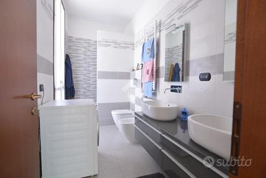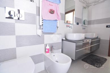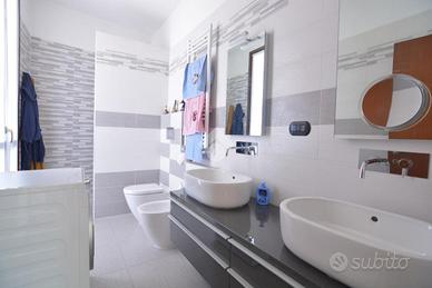 Tramite la scala in marmo si accede al piano superiore dove ci sono due camere matrimoniali di cui una con balcone e il secondo servizio finestrato (rinnovato nel 2017) con box doccia doppio.