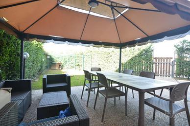 Proponiamo una villetta a schiera internamente ristrutturata nel 2012, libera su due lati con esposizione nord ovest. Il giardino privato è di circa 100 mq, finemente piantumato e dotato di area attrezzata per i cani.