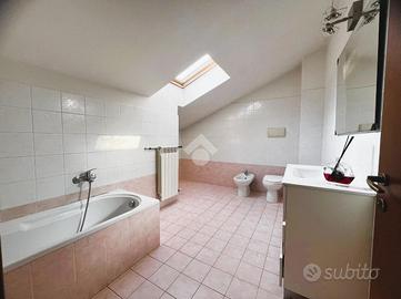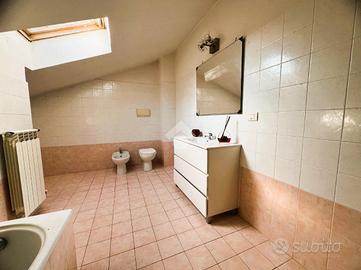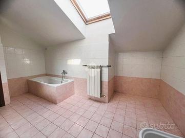 La scala interna in muratura conduce alla zona notte composta da due camere da letto, dal secondo servizio finestrato con vasca e da un terzo ambiente mansardato con travi a vista utilizzabile come terza camera da letto o come studio/zona hobby. Le tre camere sono rifinite da un pavimento in parquet.