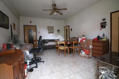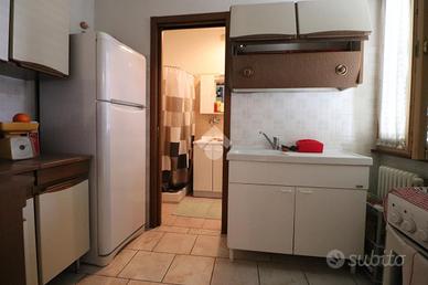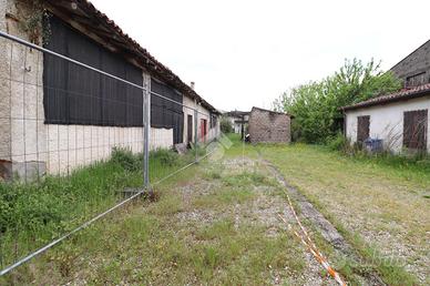 ROVERBELLA- In centro paese proponiamo villetta a schiera da ristrutturare con ampia area cortiva e rustico di proprietà + piccolo Negozio fronte strada