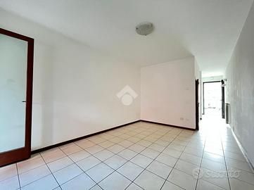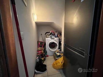 Immobile che si sviluppa su due livelli; superato il vialetto d'ingresso, al piano terra si estende la zona giorno, con cucina separata attraverso un corridoio dal soggiorno che si affaccia sul secondo spazio esterno di pertinenza della casa, nel vano del sottoscala è stata ricavata una zona lavanderia.