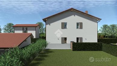 FONTANA - ULTIMA VILLETTA IN BORGO NUOVO A Fontana di Rubiera, immerso nel verde, proponiamo ULTIMA soluzione disponibile con ampio giardino privato all'interno di un meraviglioso borgo di nuova costruzione composto da sole 4 unità abitative. Caratteristiche principali: - circa 130 mq di abitazione disposta due livelli composta da zona giorno open space al piano terra, zona notte al piano primo e doppio servizio; - giardino esclusivo di 600 mq ideale per trascorrere in totale privacy e tranquillità momenti all'aperto; - garage di pertinenza in corpo staccato che può ospitare comodamente auto di ampie dimensioni ed eventuali attrezzature; - comfort moderni, finiture personalizzabili di alta qualità, classe energetica A4 e struttura antisismica. Ottima soluzione per chi ricerca tranquillità, indipendenza e spazi pratici e funzionali all'interno di un bel contesto immerso nel verde. Evidenziata in planimetria l'ultima disponibile in rosso OPZIONE A. PER MAGGIORI INFORMAZIONI O PRENOTARE UN APPUNTAMENTO CONTATTACI AL o