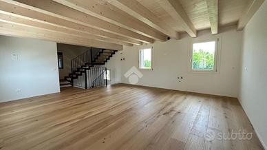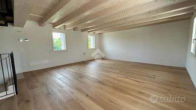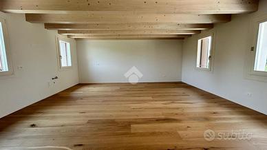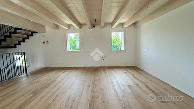 L'immobile si sviluppa su tre livelli e si distingue per il suo design ricercato e gli ambienti luminosi, impreziositi da travi in legno a vista che conferiscono calore e autenticità agli spazi interni.