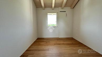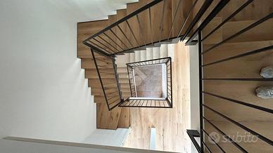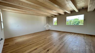L'immobile si sviluppa su tre livelli e si distingue per la qualità costruttiva e le finiture raffinate, con travature in legno a vista che conferiscono calore e personalità a tutti gli ambienti.
