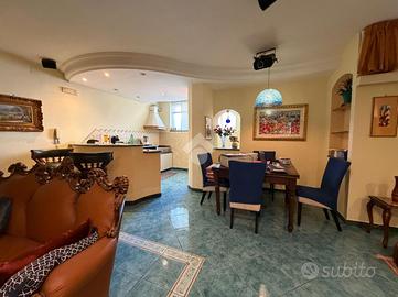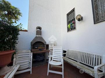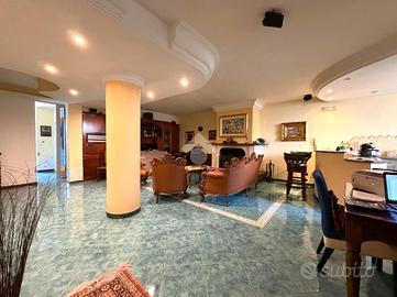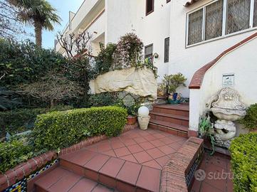 L'immobile offre cinque bagni, di cui: uno con vasca idromassaggio, uno con doccia Jacuzzi, uno con soffione idromassaggio. Tra le dotazioni troviamo inoltre sistema di allarme centralizzato, impianto Dolby Surround e filodiffusione su ogni piano, oltre a boiler con pannello per la produzione di acqua calda. A completare la proprietà vi è uno splendido terrazzo di copertura con vista mare, dotato di doccia esterna, e al quarto piano una comoda lavanderia. La posizione strategica consente di avere tutti i servizi a portata di mano, mantenendo al tempo stesso la tranquillità di un contesto residenziale. Superficie complessiva: circa 400 mq, comprensivi degli spazi esterni