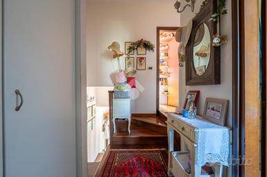 Al piano terra si apre la zona giorno, composta da un ampio soggiorno con pavimenti in parquet e accesso diretto al giardino, una cucina abitabile e un bagno di servizio. Salendo al primo piano si trovano tre camere da letto: una spaziosa camera matrimoniale con bagno en suite dotato di vasca idromassaggio, una camera singola ed una camera doppia, oltre ad un secondo bagno cieco con ventola di ricircolo. Il terrazzino, accessibile dalla camera doppia, è stato completamente rifatto nel 2024 insieme alla facciata esterna, aggiunge valore e vivibilità alla zona notte.