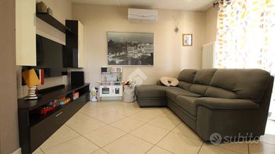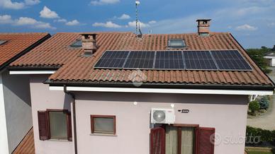 In zona residenziale, casa indipendente di recente costruzione con spazioso giardino privato. L'ingresso, mediante portoncino blindato, dà direttamente sul soggiorno che comunica con il locale cucina e sala da pranzo. Da quest'ultima si ha accesso al terrazzino posto lateralmente alla casa. Completa il piano un bagno con finestra e doccia. Il piano primo, accessibile mediante una comoda scala interna, conduce alla zona notte. Quest'ultima conta di due camere da letto con accesso sul balcone ed un bagno con vasca e finestra. Infine, il piano secondo ospita il locale sottotetto non abitabile. A corredo della proprieta' vi è un box auto doppio con basculante elettrico nel locale seminterrato ed un locale cantina. L'immobile è dotato di un'ottima efficienza energetica in quanto sono stati posizionati i condizionatori caldo/freddo, il tetto è stato coibentato con cemento armato, è presente l'impianto fotovoltaico da 6,3 Kw con accumulo da 10 Kw ed è presente una pompa di calore ibrida installata nel 2025. Inoltre, è presente impianto tv satellitare, impianto fibra radio e vi è la predisposizione per l'allarme. Esternamente, sono presenti le tende da sole motorizzate con sensore di vento e pioggia e vi sono le valvole termostatiche su tutti i termosifoni. Gli infissi sono doppi e dotati di zanzariere. L'accesso alla proprieta' si ha mediante accesso pedonale che carraio.