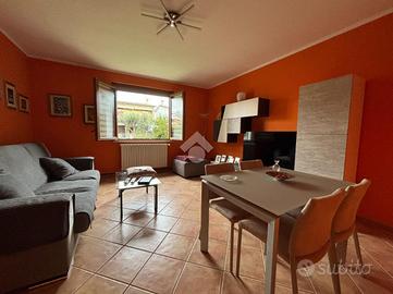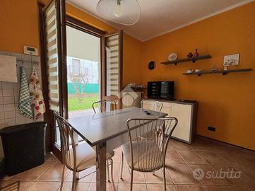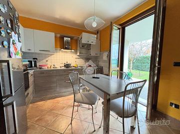 L'abitazione si sviluppa su due livelli: al piano terra l'ingresso conduce al soggiorno, luminoso e accogliente, collegato alla cucina separata che offre l'accesso diretto al giardino.