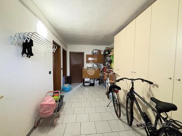 Sempre al piano terra si trovano un bagno/lavanderia con doccia e il box auto collegato direttamente alla casa, una comodità che rende gli spazi funzionali e pratici.