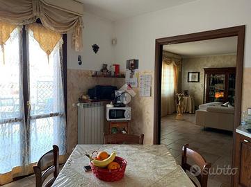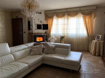 L'ingresso, tramite il portoncino blindato, è sul soggiorno doppio con termocamino a legna. La cucina è abitabile e affaccia sull'ampio terrazzo piastrellato, ideale per essere utilizzato nella bella stagione. Tramite il disimpegno, si accede al bagno con vasca e alle due camere da letto matrimoniali, di cui una con bagno padronale.
