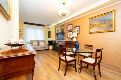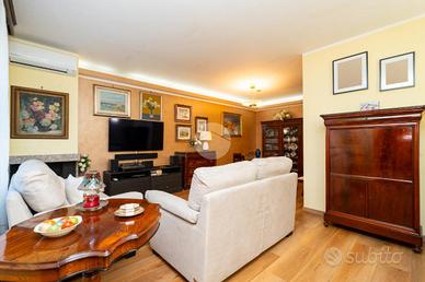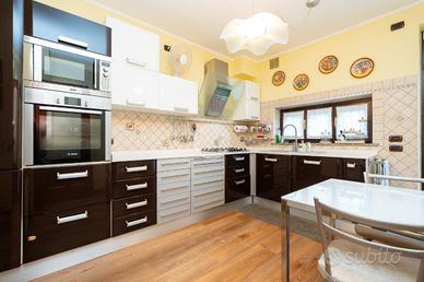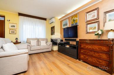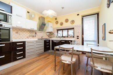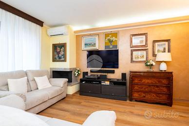 La villetta è posizionata in un piccolo contesto di sole 8 abitazioni. Costruita a fine anni '80 e rivista internamente nel 2019, sarà oggetto di rifacimento della facciata condominiale già approvata. Dal vialetto comune di accede alle singole abitazioni. Ogni villetta ha il proprio cancelletto che delimita la proprietà e dal quale si può accedere al giardino antistante l'abitazione. La porta blindata conduce al salotto con camino a legna funzionante e alla cucina abitabile. Sul retro è presente un secondo giardino, ideale da utilizzare con parenti ed amici nelle calde giornate estive, dotato di una zona piastrellata ed un angolo barbecue. Completa il piano terra un bagno con doccia. La scala interna in marmo che collega tutti i piani conduce alla zona notte composta da due camere da letto, di cui una con cabina armadio; e lo studio. Il bagno al piano è dotato di doccia. La mansarda abitabile con terrazzo completano la soluzione. Il piano seminterrato è composto da una tavernetta, un box auto con portone automatizzato e la zona lavanderia. Caratterizza la soluzione le basse spese condominiali ed il riscaldamento autonomo.