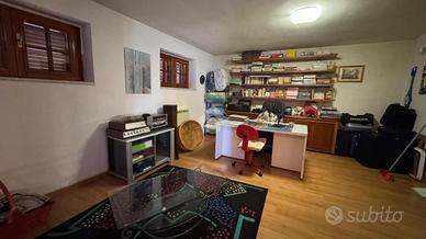 Il piano seminterrato ospita un ampio soggiorno, un bagno e una pratica lavanderia, ideali come zona relax o area hobby.