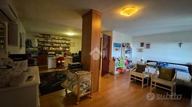 Al piano terra ci accoglie un ampio e luminoso soggiorno con zona pranzo e un accogliente camino a legna, ideale per creare un'atmosfera calda e familiare. Adiacente, troviamo una cucina abitabile semiaperta, funzionale e ben organizzata. Sullo stesso livello si sviluppano due camere da letto con accesso ad un ampio balcone di pertinenza.