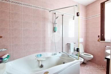 SAN MAURO MARE: Villetta a schiera su 3 livelli con garage doppio. Accedendo alla soluzione veniamo accolti dall'ampia corte, da cui si entra nella luminosa zona giorno open space, completa il piano un bagno finestrato e una camera da letto. Al piano primo troviamo uno studio che si può adibire anche a salottino che è comunicante all'ampio balcone e alla lavanderia, dal disimpegno accediamo alla camera da letto matrimoniale e al bagno finestrato con vasca idromassaggio. Al piano secondo sottotetto troviamo un'altro spazio adibito a studio comunicante con un'altra camera da letto e un altro bagno finestrato. Completa la soluzione al piano seminterrato la presenza di due garage, una cantina e un ulteriore bagno e lavanderia. Nella villetta sono presenti, zanzariere, inferiate, doppi vetri e aria condzionata. LA SOLUZIONE SI PRESTA BENE AD ESSERE DIVISA IN DUE APPARTAMENTI SEPARATI, GRAZIE AI DUE INGRESSI INDIPENDENTI, POTREBBERO DIVENTARE UN BILOCALE AL PIANO TERRA CON CORTE E GARAGE, E APPARTAMENTO QUADRILOCALE AL PIANO PRIMO E SECONDO CON GARAGE E CORTE. Per ulteriori informazioni chiamare al numero o allo