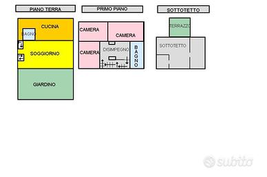 Villa unifamiliare a schiera allo stato rustico in vendita! Se sogni di personalizzare la tua casa nei minimi dettagli, questa è l'occasione giusta. Proponiamo villa a schiera sviluppata su più livelli, di circa 80 mq per piano, con doppia esposizione e ampi spazi interni ed esterni. Composizione: Si accede alla villa tramite un giardino privato fronte strada di circa 70 mq, perfetto per momenti di relax o cene all'aperto. Piano rialzato: luminoso soggiorno a vista, cucina abitabile con cucinino, dispensa e bagno di rappresentanza. Tavernetta: ampio ambiente unico, bagno e ripostiglio. Primo piano: camera matrimoniale, 2 camerette, 2 cabine armadio ed ampio bagno con doppio punto luce. Sottotetto: due piccoli vani, ripostiglio e terrazzo a livello. La villa è allo stato rustico, ideale per chi desidera personalizzare gli ambienti secondo il proprio stile e gusto. Una soluzione indipendente, spaziosa e luminosa, perfetta per famiglie che cercano comfort e privacy!