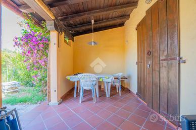 Il villaggio Tamerici, complesso sorto agli inizi degli anni '90, è posizionato in un punto strategico del paese permettendo di avere vicino i principali servizi e le spiagge e al contempo un ambiente tranquillo e immerso nel verde Questa villetta, sviluppata su un unico livello, è una soluzione perfetta per chi è alla ricerca di una casa indipendente. L'ingresso apre sul giardino di proprietà, dove una zona verde e una veranda coperta, permettono di poter mangiare all'esterno in compagnia di amici. Dalla veranda si accede alla zona giorno, dove è presente un divano e l'angolo cottura a vista. Il disimpegno conduce alla camera matrimoniale ed un bagno dotato di vasistas. Completa la soluzione un posto auto di proprietà posto el piazzale di fronte al vialetto per accedere alle case. L'immobile è pronto all'uso sin da subito, perfetto per chi cerca una casa pronta senza dover considerare costi di ristrutturazione. Questa soluzione è ideale per chi cerca una casa vacanze, o per chi è alla ricerca di un investimento usufruendo della posizione centrale e dei 4 posti letto che si ricavano grazie al divano a letto presente nella zona giorno.