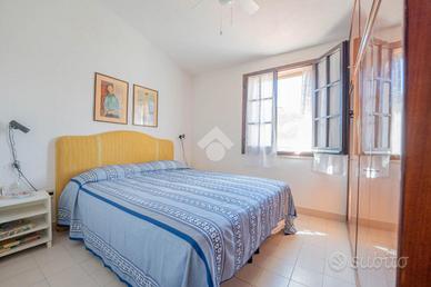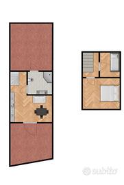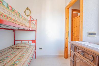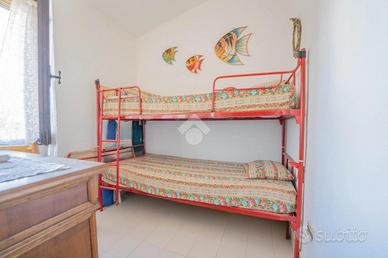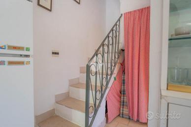 Dalla scala interna si accede alla zona notte dove sono presenti due camere, una matrimoniale con affaccio sul giardino di ingresso ed una cameretta con affaccio sul retro della proprietà, arredata con un letto a castello. La metratura al piano quindi consente di avere 4 comodi posti letto, nell'ottica di una locazione turistica breve.