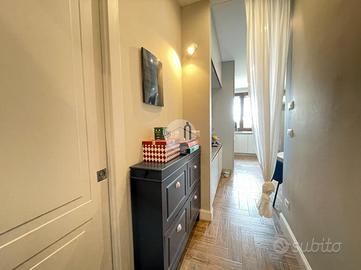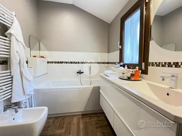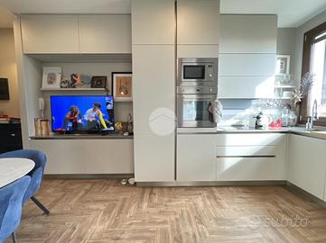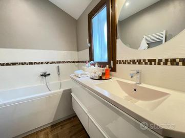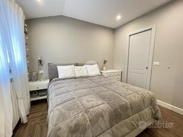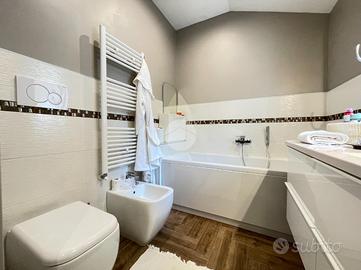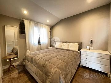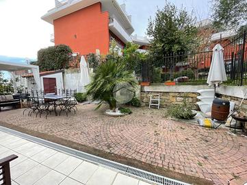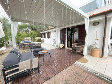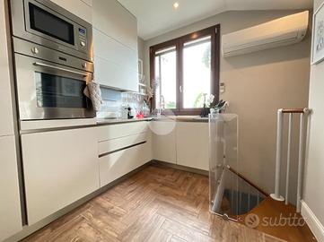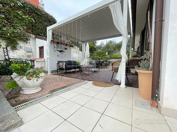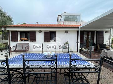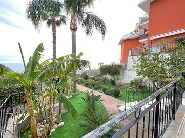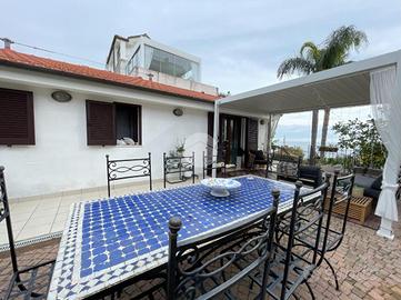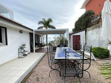 L'immobile è situato nella rinomata zona Foce, in particolare in Via Padre Semeria arteria principale di Sanremo, un quartiere residenziale di pregio, rinomato per la sua tranquillità ed esposizione solleggiata e per la sua vicinanza alle spiagge sabbiose più belle del ponente. La proprietà dispone di due ingessi, uno pedonale per gli ospiti e uno dal retro dell'abitazione dove permette di parcheggiare l'auto in un parchegio di proprietà. La Villetta schiera è seminidipendente con giardino privato molto curato nei dettagli sia per il prato che per le piante e alberi di agrumi scegli come ornamento, inoltre abbiamo anche un ampio e spazioso terrazzo panoramico con vista mare dove poter godere dei momenti di relax e comfort in quanto la vista è mozzafiato e la tranquillità della zona è particolarmente silenziosa e assai piacevole. L'ingresso si apre su un soggiorno luminoso con cucina a vista. La cucina, dal design contemporaneo, è valorizzata da una finestra sopra il lavandino con vista mare, dettaglio che dona luce naturale e un'atmosfera ariosa all'ambiente. Un corridoio conduce al bagno di servizio con doccia. A seguire si trova la camera da letto principale, dotata di un'ampia finestra, cabina armadio e bagno privato con vasca, pensato come servizio riservato e confortevole. Dal soggiorno, una scala a chiocciola porta al piano inferiore dove si trova una seconda camera finestrata, ideale come camera per ospiti, studio, ambiente dedicato allo smart working o allo sport. Questa soluzione è ideale per chi cerca indipendenza, comfort e una posizione con affaccio panoramico a pochi passi dai principali servizi che la città di Sanremo offre.