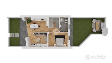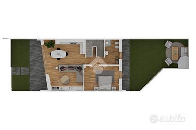 Gli ambienti sono luminosi, grazie alle ampie vetrate, e si sviluppano su più livelli, offrendo spazi versatili e finiture personalizzabili.