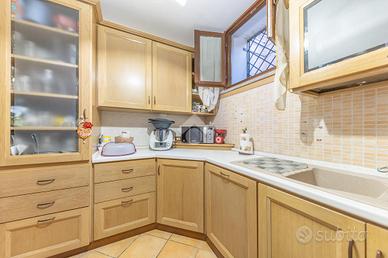 Il valore aggiunto di questa proprietà si scopre al piano S1, dove una grande sala conviviale e una cucina diventano il cuore pulsante della casa, il luogo perfetto per cene in compagnia, feste di famiglia o semplicemente per vivere appieno ogni momento. Da qui si accede a un secondo giardino, in parte mattonato e in gran parte verde, uno spazio prezioso da vivere nella bella stagione, tra pranzi all'aperto, area giochi o momenti di puro relax.