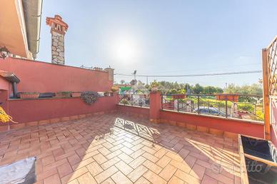 Al piano terra si apre un salone luminoso e accogliente, perfetto per momenti di relax o per ricevere amici, affiancato da uno studio ideale per lavorare da casa o creare uno spazio personale, oltre a un bagno comodo e funzionale. Salendo al piano superiore si entra nella zona notte, pensata per garantire comfort e privacy: una camera con balcone per iniziare la giornata con una boccata d'aria fresca, un'altra con terrazzo privato dove ritagliarsi un angolo di tranquillità, e un bagno a servizio del piano che completa l'ambiente con praticità ed eleganza.