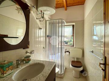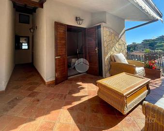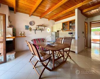 Scario, meta turistica cilentana nota per i suoi numerosi scorci costieri e per la qualità delle acque marine, al Parco Elaion, villa a schiera al primo piano con terrazzo e posto auto di proprietà esclusiva. La proprietà ha ingresso nell'ampio salone, con cucina a vista, valorizzato dall'apertura diretta sul balcone ove è possibile pranzare e cenare all'aperto nelle calde giornate estive, godendo del panorama su tutto il Golfo di Policastro; la zona notte è composta da una camera da letto, matrimoniale, dalla quale si ha accesso al terrazzo antistante l'ingresso. Il bagno, con finestra, completa la proprietà. Dal disimpegno, tramite la scala retrattile, si accede al sottotetto ove vi è la possibilità di ricavare la seconda camera da letto, o semplicemente sfruttandolo come comodo ripostiglio. La prossimità alle spiagge ed ai servizi rende questa soluzione ideale per chi desidera vivere in totale relax, staccando la spina dal caos cittadino.