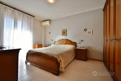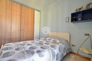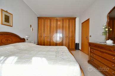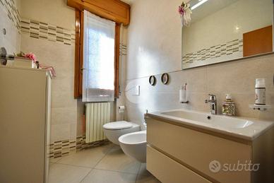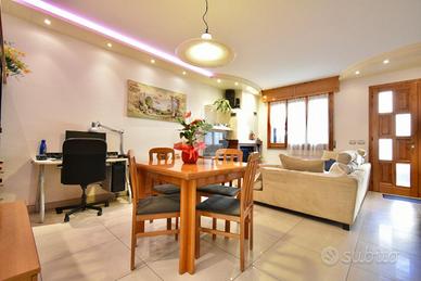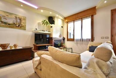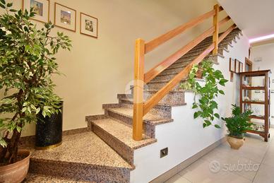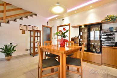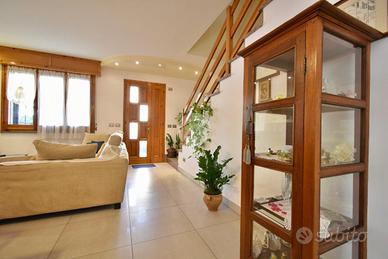 SANTARCANGELO, zona San Bartolo: in zona residenziale tranquilla a pochi minuti da tutti i principali servizi, villetta a schiera di ampie dimensioni con ingresso indipendente, giardino e garage di proprietà. L'ingresso dell'abitazione si apre sulla corte di proprietà che con vialetto pavimentato ci accompagna al balcone d'ingresso al piano rialzato. Ci accoglie un'ampia e luminosa zona giorno arricchita da un camino e da porte scorrevoli in vetro che separano gli ambienti. La pavimentazione in gres porcellanato valorizza il soggiorno donandone eleganza. Il piano inoltre presenta una cucina abitabile separata con balcone privato ed un bagno di servizio finestrato. Tramite una comoda scala in muratura rivestita in granito lucidato, si raggiunge il piano superiore dove troviamo la zona notte che ospita due camere da letto matrimoniali, una stanza da adibire a guardaroba o studio ed un bagno finestrato con la vasca. Entrambe le camere da letto presentano due balconi privati. Al piano interrato, accessibile tramite scala interna, sono presenti un ampio bagno finestrato adibito anche a lavanderia, un ripostiglio usato come dispensa, una cantina compelta di camino ed un ampio garage di proprietà. L'immobile inoltre presenta anche una piccola corte adibita ad orto. L'immobile si presenta in ottime condizioni in quanto è stato parzialmente ristrutturato nel corso degli ultimi anni: riscaldamento a pavimento al piano rialzato, riscaldamento autonomo al piano superiore, aria condizionata inveter caldo/freddo, infissi in doppio vetro in legno con zanzariere ed inferriate, aspirazione centralizzata in entrambi i piani, illuminazione LED nel soffitto del soggiorno e caldaia a condensazione cambiata recentemente. Ideale per chi cerca una soluzione in un contesto riservato vicino a tutti i principali servizi come bar, ristoranti, scuole, banche, poste e supermercati. Per qualsiasi informazione potete contattarci o mandare un messaggio WhatsApp al nostro numero di telefon