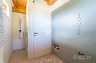 La grande solidità antisismica della villetta deriva dal fatto che i muri originari, oltre che risanati e consolidati con la palificazione delle fondazioni, sono stati avvolti da un'esoscheletro in Isotex, mattoni particolarmente performanti anche nell'isolamento termico. I muri perimetrali di circa 50 cm e gli infissi in legno ad elevato taglio termico, uniti ad impianti di ultima generazione (riscaldamento a pompa di calore con diramazione a pavimento, fotovoltaico di 6 Kwh con batterie di accumulo di 10 kwh) comportano un livello bassissimo di dispersione termica: l'abitazione è attualmente censita in classe energetica A1, che diventerà classe A4 una volta messi in funzione il fotovoltaico e le batterie di accumulo.