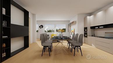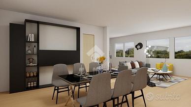 Scorzè - Gardigiano Porzione di villa a schiera di nuova costruzione A Gardigiano di Scorzè proponiamo in vendita una porzione di villa a schiera attualmente in fase di realizzazione, con consegna prevista per la fine del 2026. L'abitazione si sviluppa su due livelli. Al piano terra si trova la zona giorno di 55 mq con soggiorno e cucina open-space, oltre ad antibagno e bagno. Al primo piano la zona notte comprende due ampie camere da letto, una terza camera pluriuso soppalcata e un bagno. Completano la proprietà uno scoperto privato di circa 75 mq, un garage, due posti auto uno coperto e l'altro scoperto. Le finiture previste includono pavimentazione in gres nella zona giorno e parquet nella zona notte, infissi in triplo vetrocamera e zanzariere, riscaldamento a pavimento, impianto fotovoltaico, climatizzazione con pompa di calore, aria condizionata canalizzata, oscuranti motorizzati, sistema d'allarme volumetrico e perimetrale e cappotto esterno per un'elevata efficienza energetica. La posizione è residenziale e comoda ai servizi: a 1 minuto dalla fermata dell'autobus, 500 metri dai negozi del paese e 5 minuti da Mogliano Veneto. I render sono a scopo illustrativo.