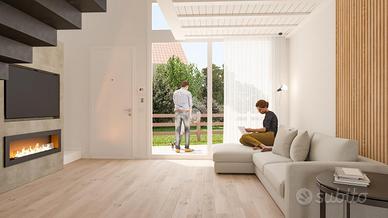 Scorzè - Gardigiano Porzione di villa a schiera di nuova costruzione A Gardigiano di Scorzè proponiamo in vendita una porzione di villa a schiera attualmente in fase di realizzazione, con consegna prevista per la fine del 2026. L'abitazione si sviluppa su due livelli: al piano terra si trova la zona giorno di 60 mq con soggiorno e cucina open-space, oltre a un antibagno e bagno. Al primo piano la zona notte comprende due spaziose camere da letto, una terza camera pluriuso soppalcata e un bagno. Completano la proprietà uno scoperto privato di circa 170 mq, un garage, due posti auto uno coperto e l'altro scoperto. Le finiture previste includono pavimentazione in gres nella zona giorno e parquet nella zona notte, infissi in triplo vetrocamera e zanzariere, riscaldamento a pavimento, impianto fotovoltaico, climatizzazione con pompa di calore, aria condizionata canalizzata, oscuranti motorizzati, sistema d'allarme volumetrico e perimetrale e cappotto esterno per un'elevata efficienza energetica, predisposizione per un caminetto. La villa è situata in una zona residenziale tranquilla, a 1 minuto dalla fermata dell'autobus, 500 metri dai negozi del centro di Peseggia e a soli 5 minuti da Mogliano Veneto. I render sono a scopo illustrativo.