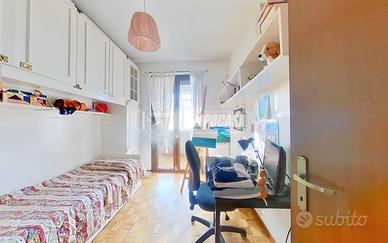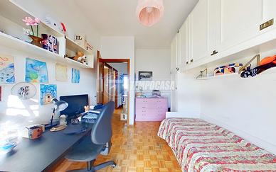Proseguendo al piano superiore si accede alla zona notte, composta da tre camere da letto, tutte con affaccio sul balcone, che garantisce luce naturale e un gradevole sfogo esterno. La camera matrimoniale dispone inoltre di un bagno privato, un comfort prezioso per la vita quotidiana. Nello stesso piano è presente un secondo bagno, dotato di box doccia e finiture funzionali.