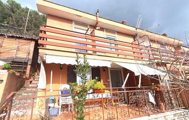 Serrone via Arnaro in zona residenziale e non lontana dal centro del paese villino a schiera d'angolo con entrata autonoma e corte in parte giardinata ed in parte pavimentata con impianto di illuminazione e posto auto scoperto di proprietà.