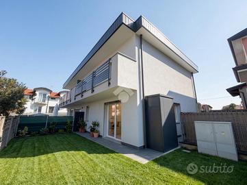 A Seveso, nella tranquilla e ricercata zona Baruccana, proponiamo in vendita una splendida villetta di testa di nuova costruzione, inserita in un esclusivo contesto residenziale di sole tre unità. La soluzione, in pronta consegna, è ideale per chi desidera vivere in un ambiente riservato senza rinunciare alla comodità dei principali servizi, quali scuole, supermercati, posta e stazione, facilmente raggiungibili a piedi. L'abitazione, di circa 130 mq interni, si sviluppa su due livelli e si distingue per la luminosità e la funzionale distribuzione degli spazi. Al piano terra troviamo un'ampia zona living con cucina a vista, con accesso diretto al giardino privato di circa 120 mq disposto su due lati, perfetto per momenti di relax e convivialità, oltre a un bagno finestrato di servizio. Una comoda scala conduce al piano superiore, dove si sviluppa la zona notte composta da una camera matrimoniale, due camerette, tutte con accesso al balcone, e un bagno padronale finestrato. L'immobile offre finiture personalizzabili grazie a un ottimo capitolato ed è dotato di tecnologie di ultima generazione, tra cui riscaldamento autonomo a pavimento, predisposizione per aria condizionata e impianto antifurto, oltre a impianto fotovoltaico privato da 3,4 kW. Queste caratteristiche garantiscono elevato comfort abitativo ed eccellente efficienza energetica (classe A). Completano la proprietà un posto auto di proprietà e la possibilità di acquistarne un secondo attiguo. Una soluzione moderna ed esclusiva, ideale per chi è alla ricerca di indipendenza, spazi esterni e qualità costruttiva in una delle zone più richieste e riservate di Seveso. Le immagini hanno finalità puramente illustrativa: rappresentano la tipologia, la distribuzione degli spazi e la struttura dell'immobile. Finiture, arredi e dettagli visivi sono da considerarsi indicativi e potrebbero non corrispondere esattamente al prodotto finale.