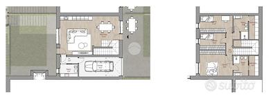L'Agenzia immobiliare Tecnorete di Silea propone villa a schiera centrale di nuova costruzione in contesto di sole otto unità abitative pronto per la fine del 2027 in zona centrale e allo stesso tempo riservata di Silea. L'immobile di sviluppa su due livelli fuori terra per un totale di circa 160 mq commerciali e si compone al piano terra in zona giorno open space di circa 43 mq, dotata di doppio accesso diretto alle due zone di giardino privato, entrambe di circa 50 mq, bagno finestrato di circa 5 mq e collegamento diretto al garage privato di circa 18 mq. La zona notte al piano primo è composta da tre camere da letto, di cui una matrimoniale di circa 17 mq, una doppia di circa 12 mq, una singola di circa 9 mq, uno studio di circa 10 mq ed un bagno finestrato di circa 7 mq con sgabuzzino. Completa la proprietà una piscina condominiale di cc 100 mq. L'immobile vanta la classe energetica A1 grazie all'impianto di riscaldamento a pavimento, aria condizionata a split, ventilazione meccanica forzata puntuale, impianto in pompa di calore alimentato da un sistema di pannelli fotovoltaici di 3 kw cc ed i serramenti in triplo vetro. L'isolamento acustico e termico è ottimale grazie alla struttura in laterizio, calcestruzzo, legno e acciaio. La zona di inserimento è centrale e al contempo riservata, inserita in contesto verde, rimane pratica a tutti i principali servizi come centri commerciali, scuole e fermata dell'autobus. ---ULTIMA UNITA' DISPONIBILE.