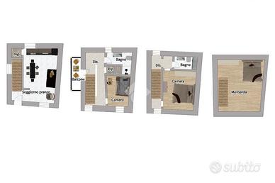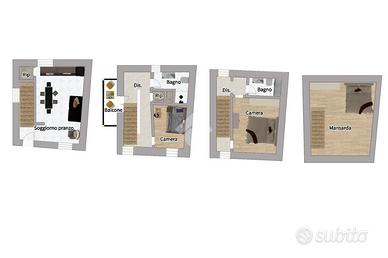 Salendo una scalinata, si accede a un balcone, ideale per godersi una tazza di caffè al mattino o un bicchiere di vino al tramonto. Il secondo piano ospita un ulteriore bagno con doccia ed una spaziosa camera matrimoniale, dalla quale si accede alla mansarda, utilizzabile come terza camera da letto.