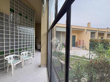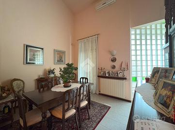 Gli ampi spazi esterni comprendono due porticati chiusi con zanzariere sia sul fronte che sul retro e un giardino privato, ideali per vivere momenti di relax all'aperto.