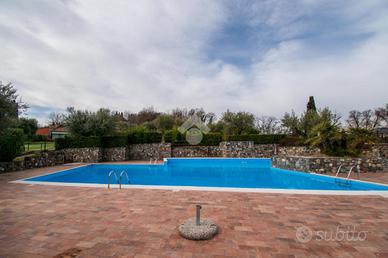 Nel rinomato Gardagolf si propone una prestigiosa villetta disposta su un piano unico e libera su due lati, con travi a vista e aria condizionata. La proprietà è composta da una luminosa zona giorno con camino e angolo cottura. La zona notte è invece composta da due grandi camere, di cui una con il proprio bagno padronale, ed un ulteriore servizio. Esternamente troviamo un ampio giardino privato e una corte esclusiva adibita a posto auto. L'immobile viene venduto arredato. Il complesso è dotato anche di una splendida piscina recentemente rinnovata.