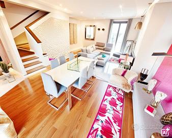 Salendo al primo piano, si accede alla zona giorno, caratterizzata da spazi ampi e ben distribuiti, perfetti per accogliere familiari e amici dove troviamo una sala ampia, cucina, stanza studio e due balconi.