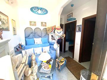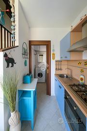 Sviluppata su due livelli, offre ampi spazi con, al piano terra la zona giorno che accoglie con un doppio salone luminoso, affiancato da un pratico cucinotto con servizio.